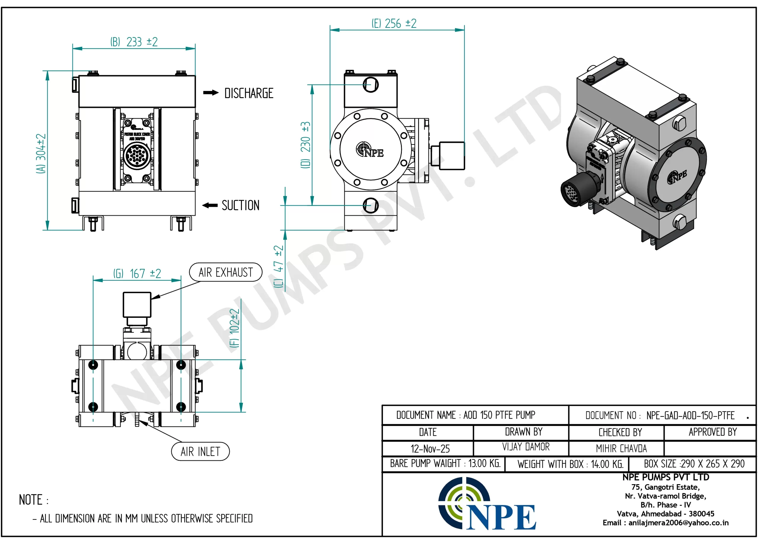 DATA SHEET FOR 150 PTFE AODD PUMP