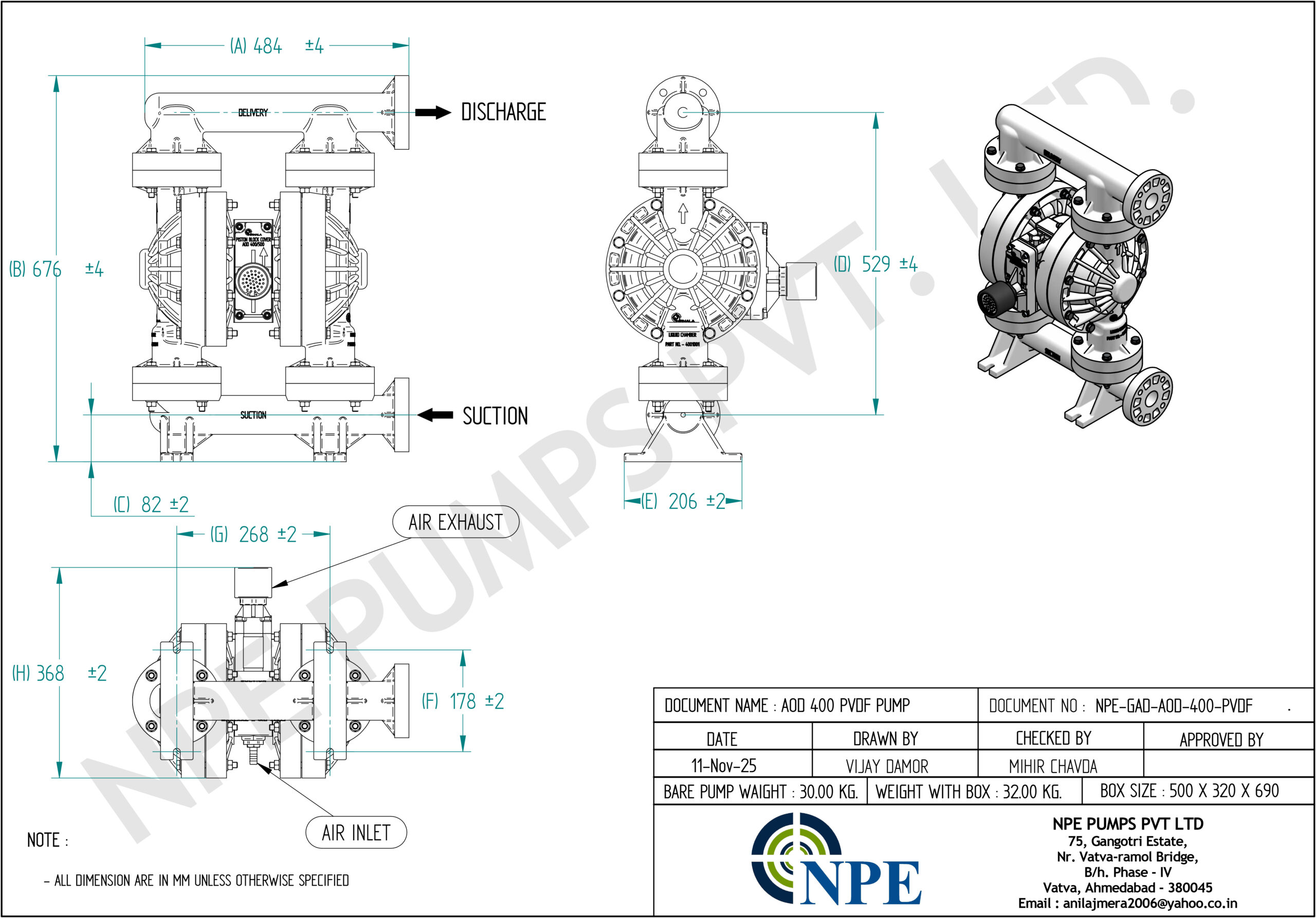 DATA SHEET FOR 400 PVDF AODD PUMP