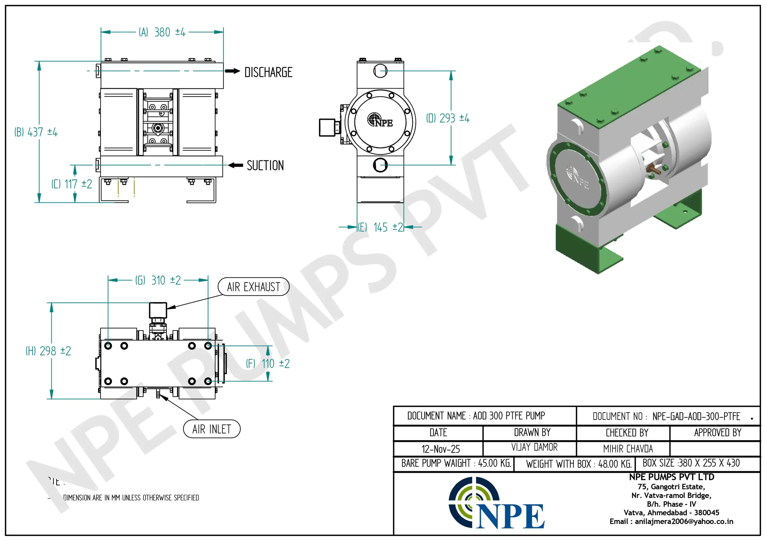 DATA SHEET FOR 300 PTFE AODD PUMP