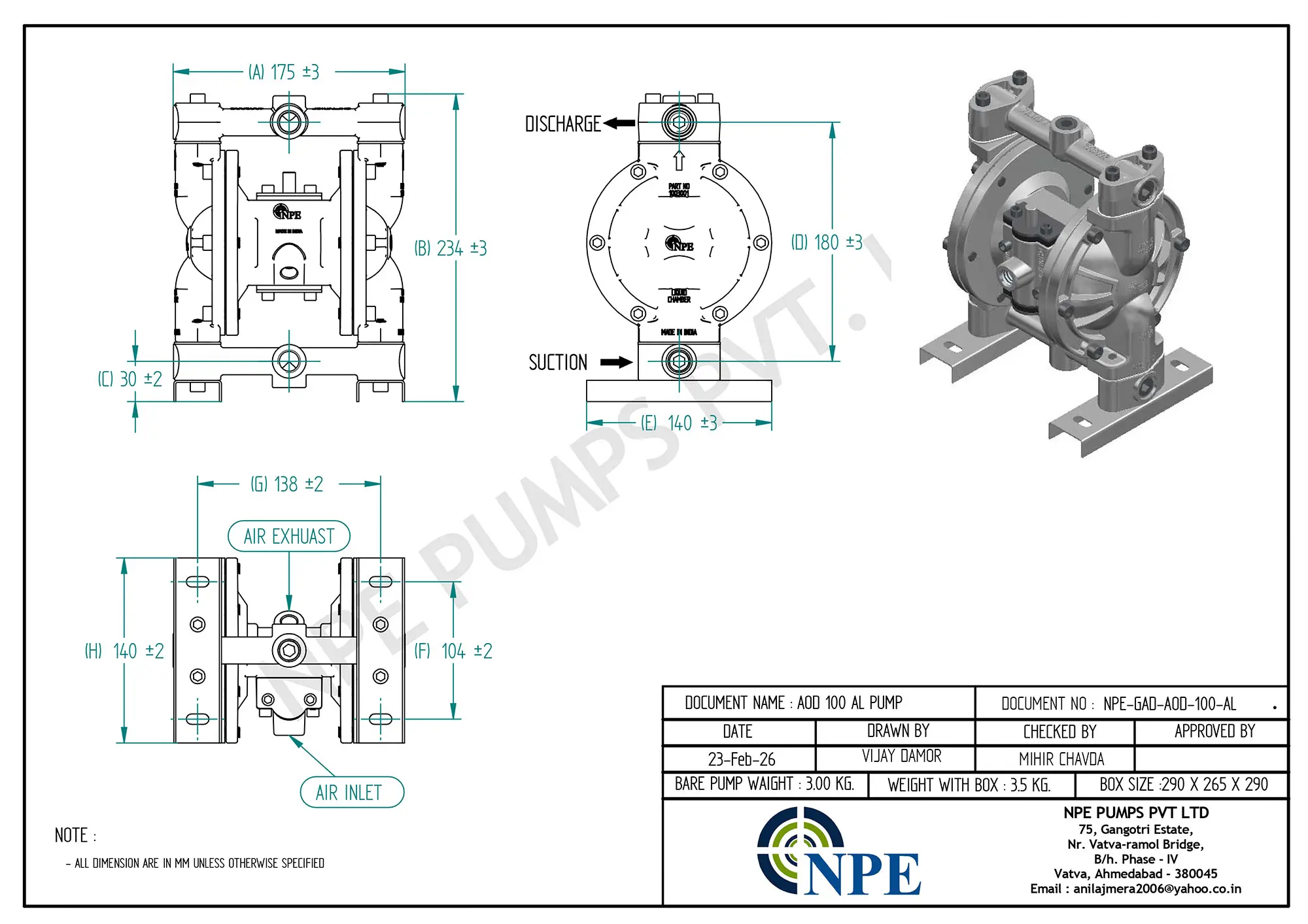 DATA SHEET FOR 100 Aluminum AODD Pump