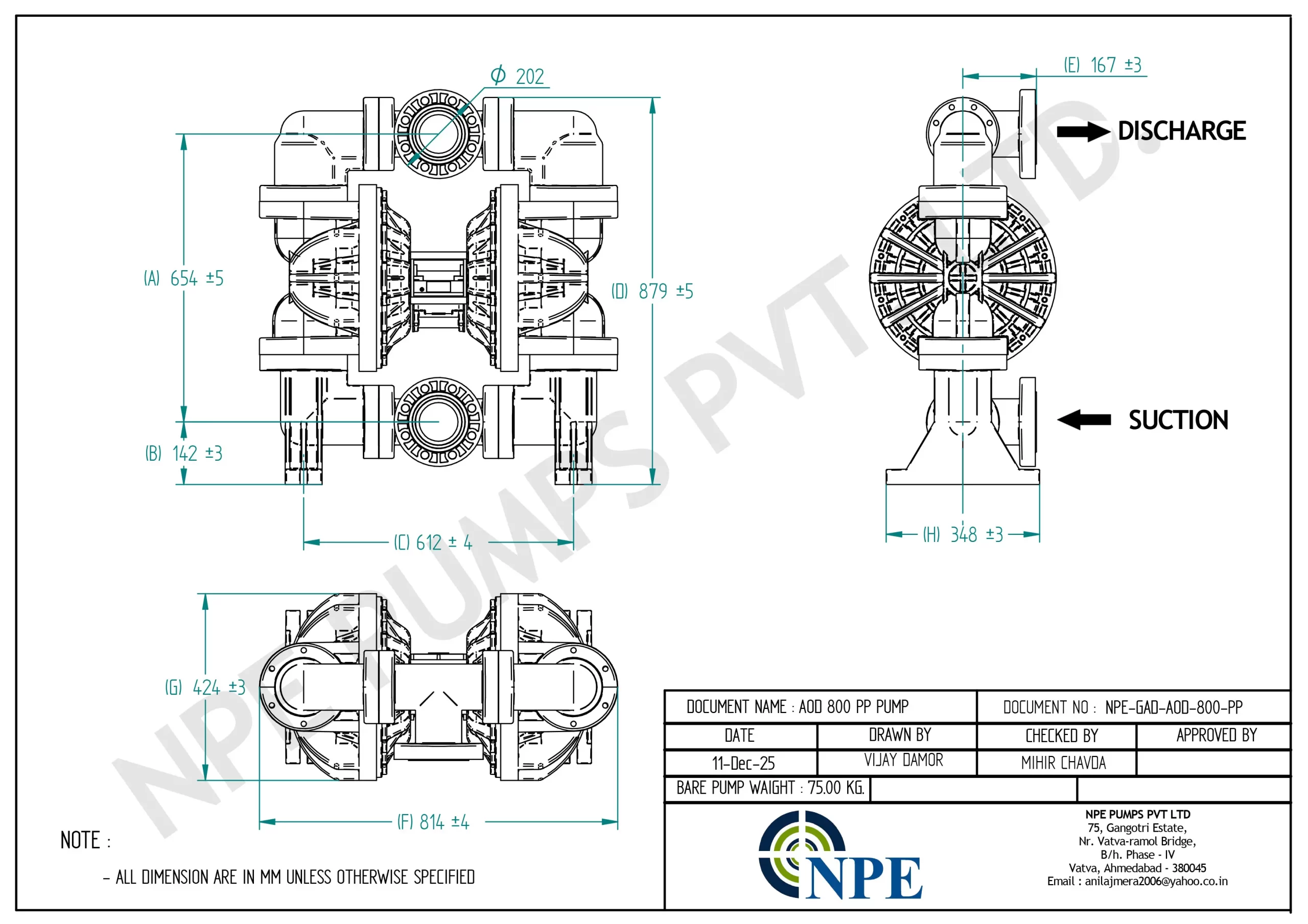 DATA SHEET FOR 800 PP AODD PUMP