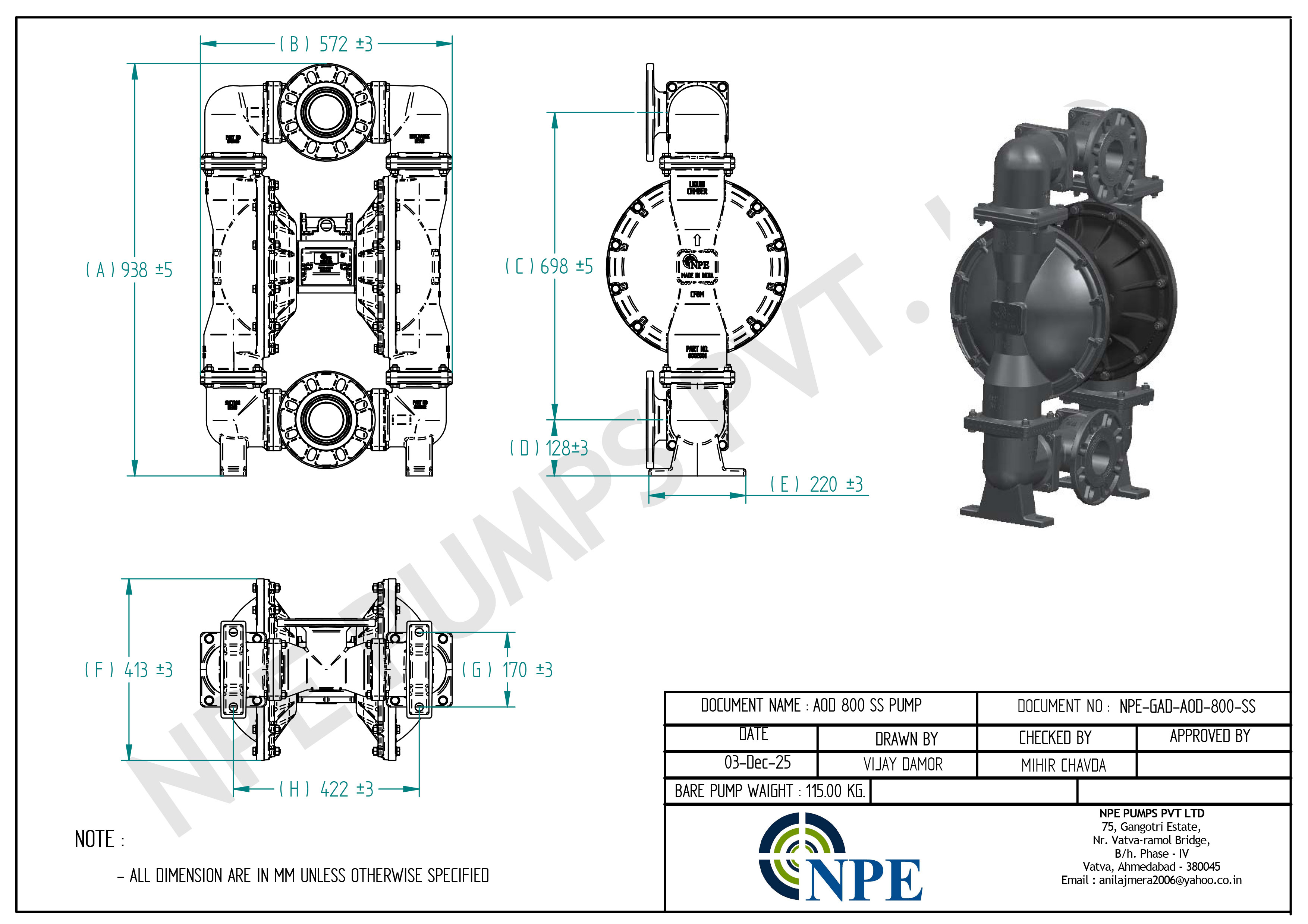 At Nirmala Pumps, we design and build high-quality 800 SS AODD pumps using durable raw materials and latest technology. Our high-grade 3-inch SS AODD pump is built to take on the tough jobs—whether you’re moving thick chemicals or sensitive fluids that need gentle handling. As prominent 3-inch SS AODD Pump suppliers in India, we don’t just sell you a machine; we provide a pumping solution that keeps your production line moving without a hitch.