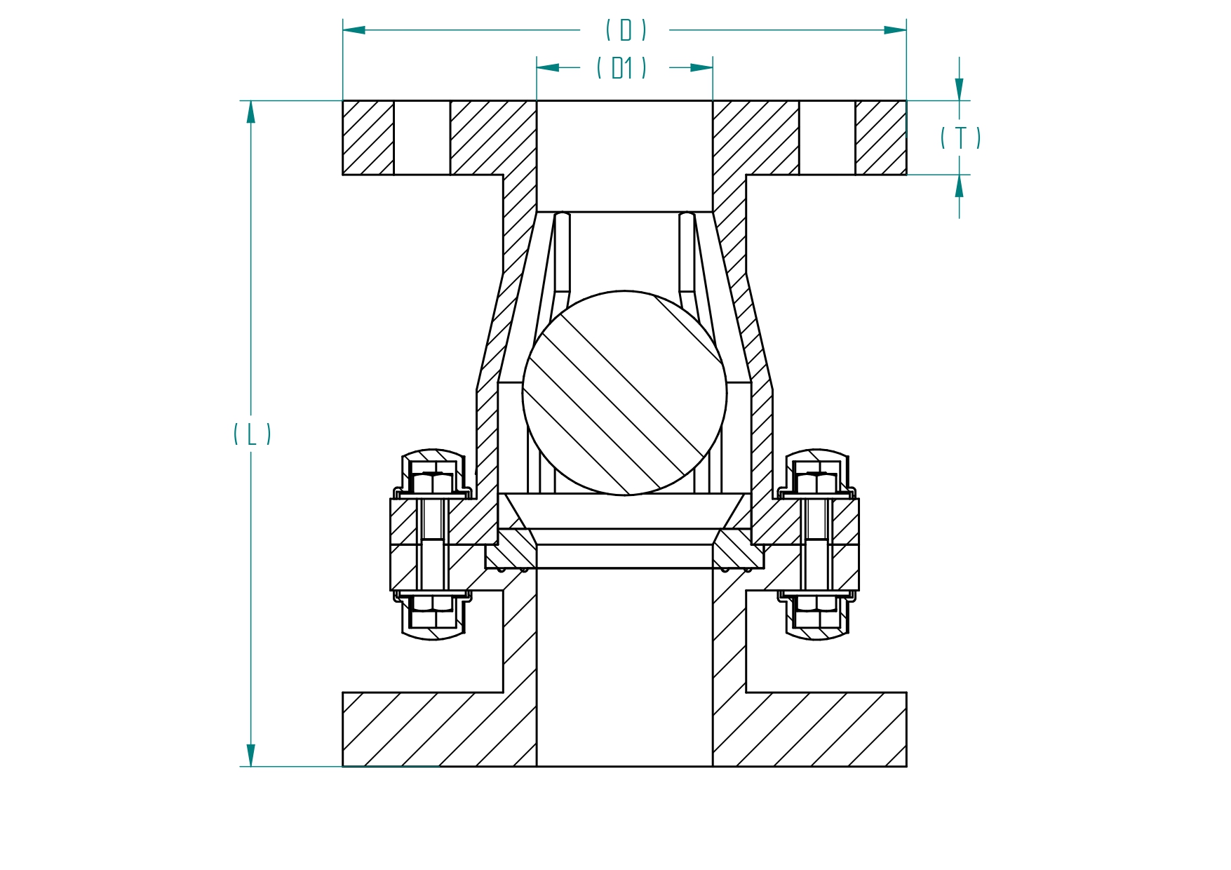 | Size | D | D1 | L | T | Flange | ||||||