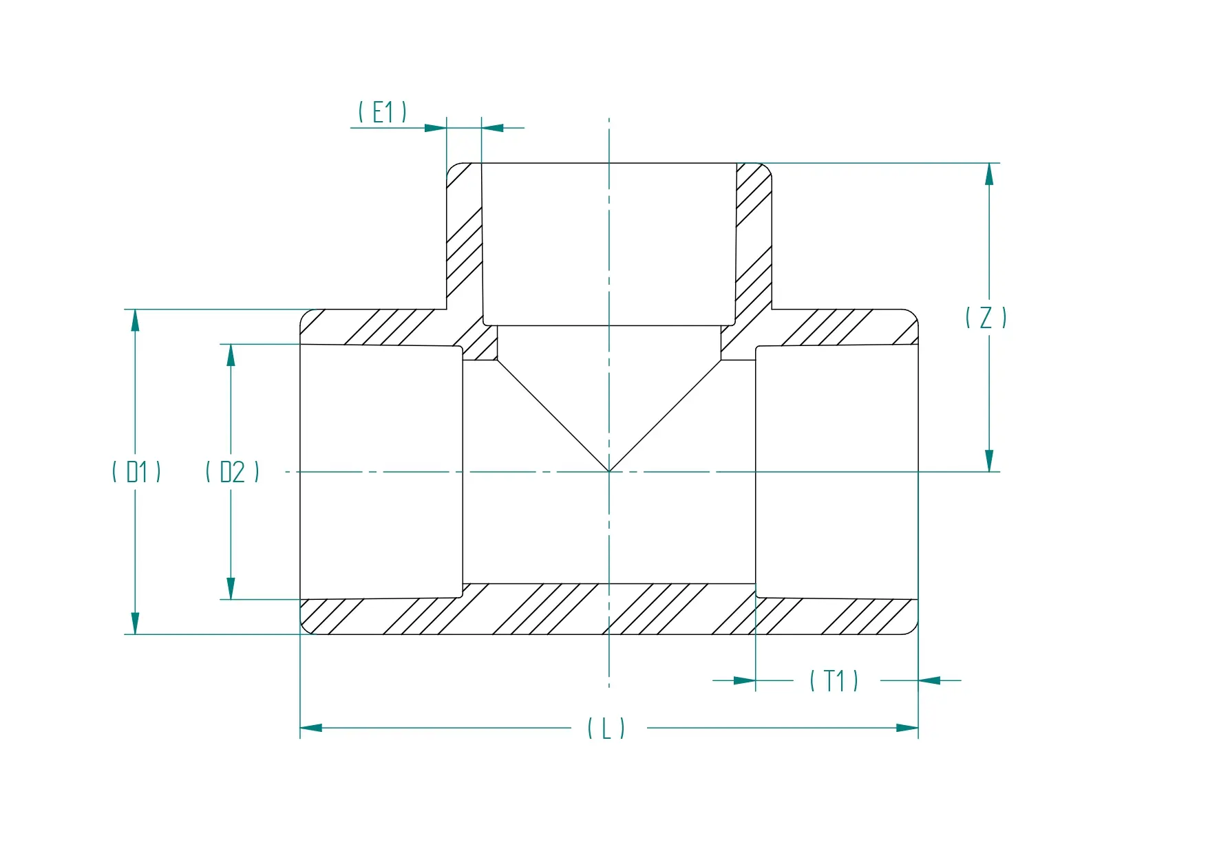 PPH Tee PPH Tee DATA SHEET FOR PPH Tee Dimensions for PPH Tee Dimensions for PPH Tee PPH TEE SIZE D1 D2 Z T1 E L INCH MM 1/2″ 20 27.5 19.5 25.5 14.5 4 51 3/4″ 25 33.5 24.5 29.5 16 4.5 59 1″ 32 41.3 31.3 35 18 5 70 1 1/4″ 40 50.6 39.5 41.5 20.5 5.6 83 1 1/2″ 50 63 49 49.5 23.5 7.1 99 2″ 63 78 61.8 60 27.5 8 119 2 1/2″ 75 91 73.7 78 32 8.3 157 3″ 90 111 88.2 89 35 11.3 178