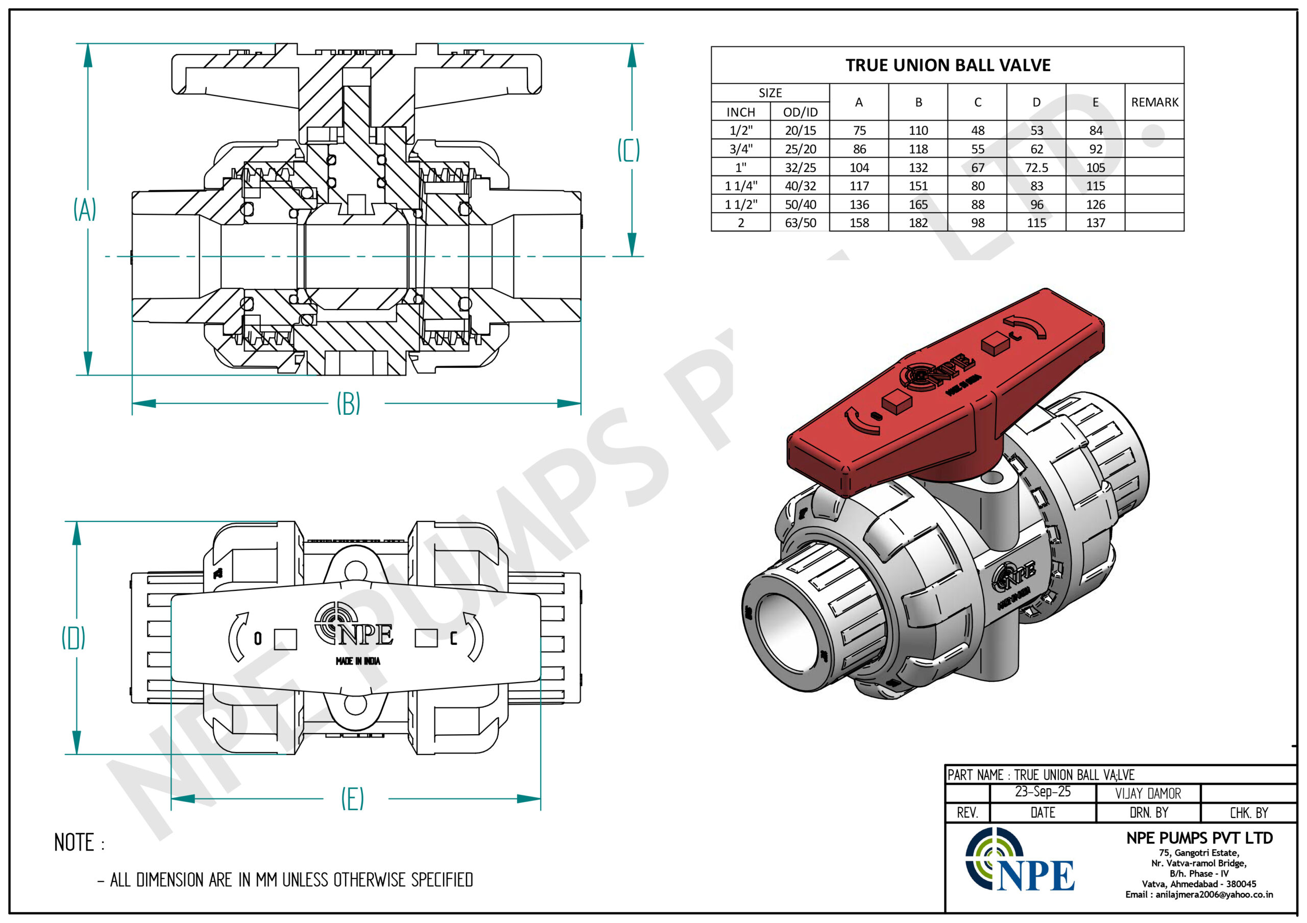 | Material (Body & Ball) | PVDF (Polyvinylidene Fluoride) |